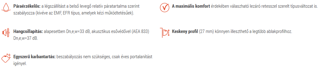 Ideális választás minden olyan otthonba, ahol fontos a komfort (automatikusan szabályozott levegő utánpótlás), az energiatakarékosság és a jó levegőminőség.