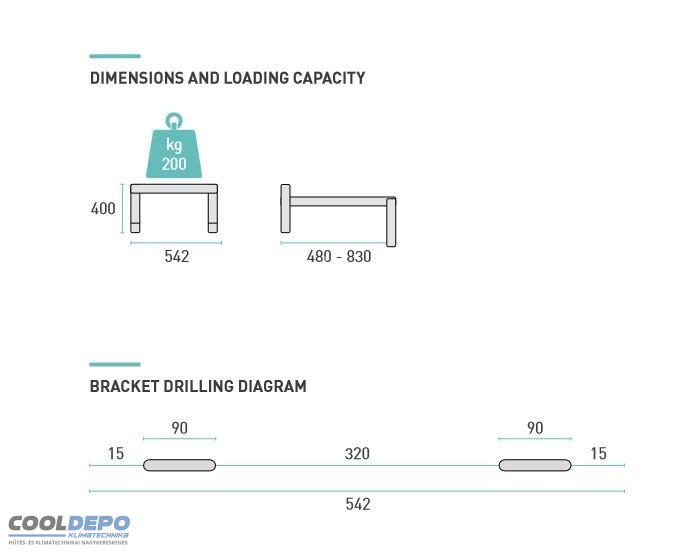 KLÍMATARTÓ MAGASÍTOTT, ÁLLÍTHATÓ KONZOL (ANTRACIT) Terhelhetőség: 200 kg-ig, (400x542/480mm-830mm)