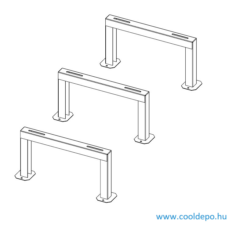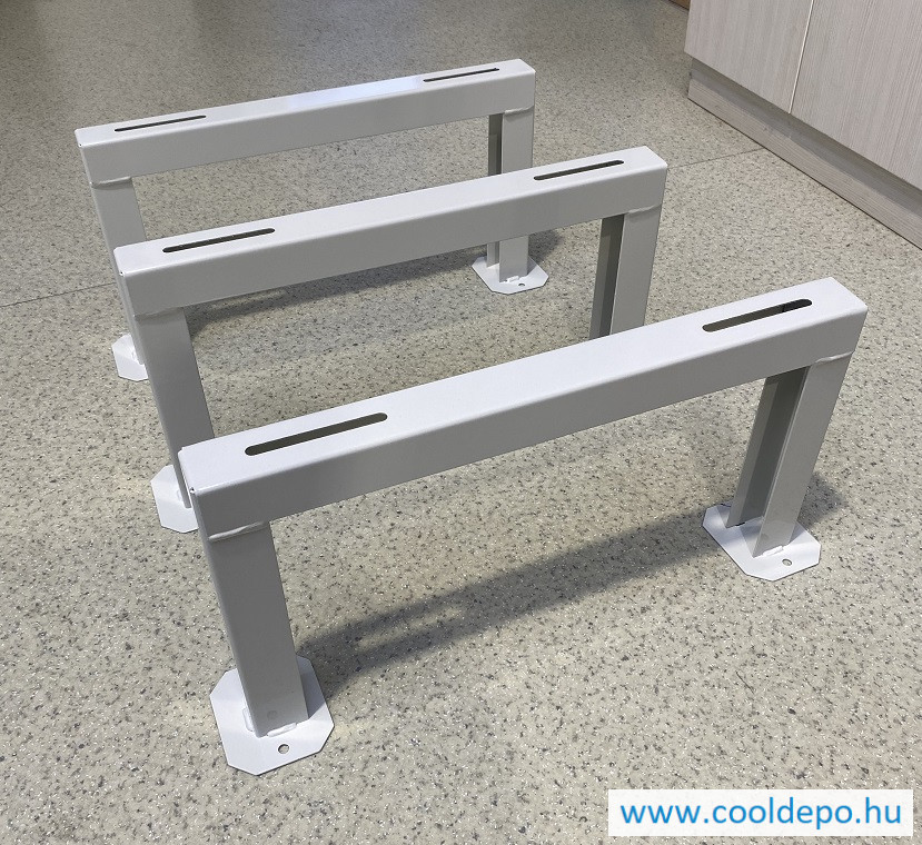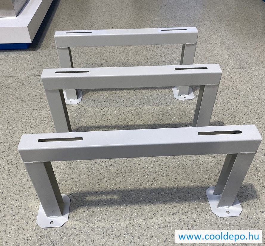 Ez a 3 darabos, magasított, hóhatáros hegesztett hőszivattyú konzolszett ideális megoldás azon hőszivattyúk számára, amelyek alul három tartóval rendelkeznek.