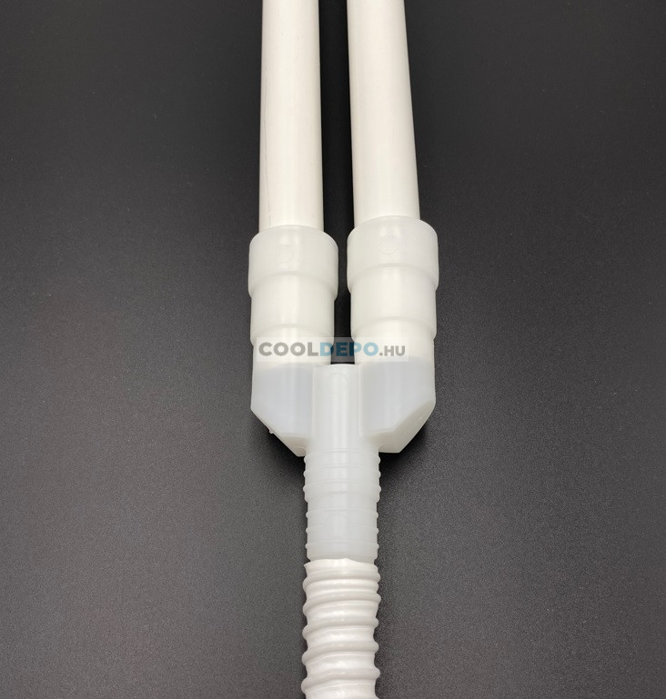 Univerzális Csatlakoztatási Lehetőség: Az Y alakú kondenzvíz elvezető idom alkalmas mind merev, mind rugalmas gégecső csatlakoztatására, így könnyen integrálható a különböző klímaszerelési rendszerekbe.