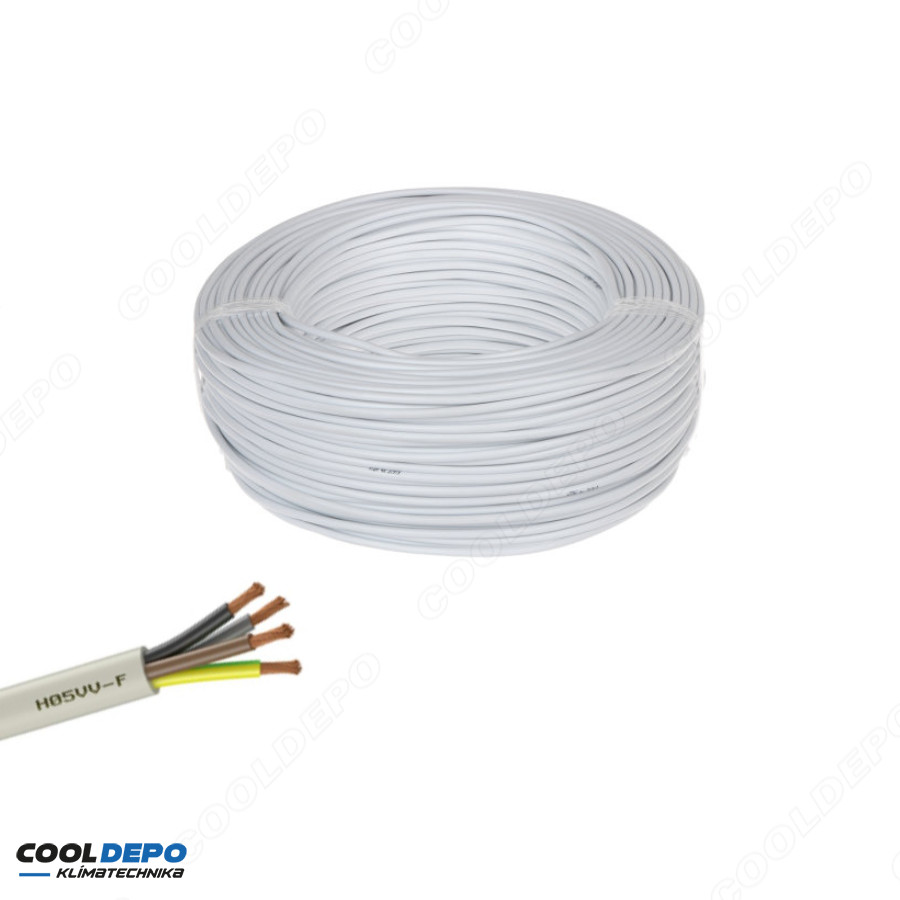 MT kábel 4×1 mm2 (H05VV-F) PVC műanyag köpenyű, PVC műanyag érszigetelésű, 4 egymástól külön elszigetelt sodrott elemi szálakat tartalmazó réz vezeték.