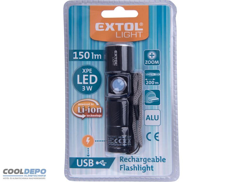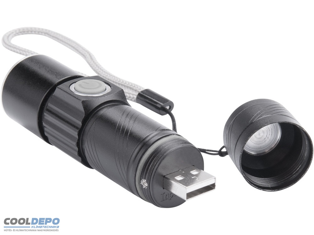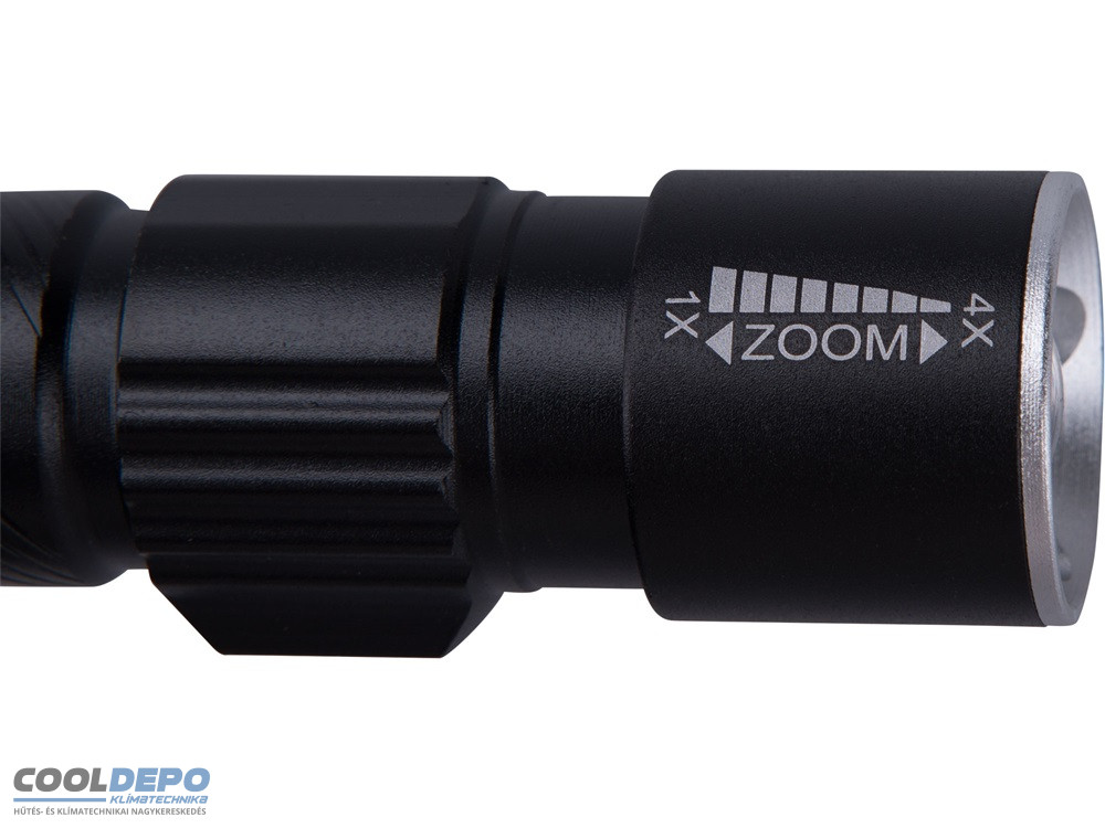 LED lámpa, 3 W, XPE LED; 150 Lm, ALU ház, zoom, újratölthető Li-ion akkus, 450 mAh