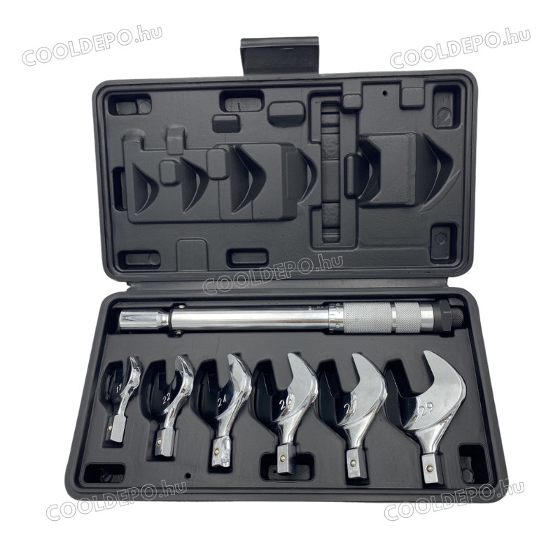 Ez a nyomatékkulcs készlet kifejezetten klímaszerelők számára készült, biztosítva a hollanderek megfelelő meghúzását, minimalizálva a szivárgás és az illesztési hibák illetve a túlhúzás kockázatát.