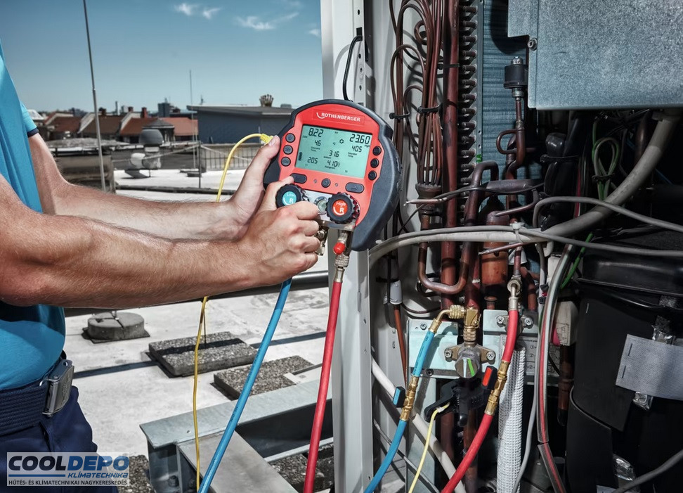 Ideális az ügyfélnek történő átadáshoz. A külső Pirani vákuumszondával a vákuum ott olvasható le, ahol a lepontosabb mérés lehetséges: közvetlenül a hűtőkörön