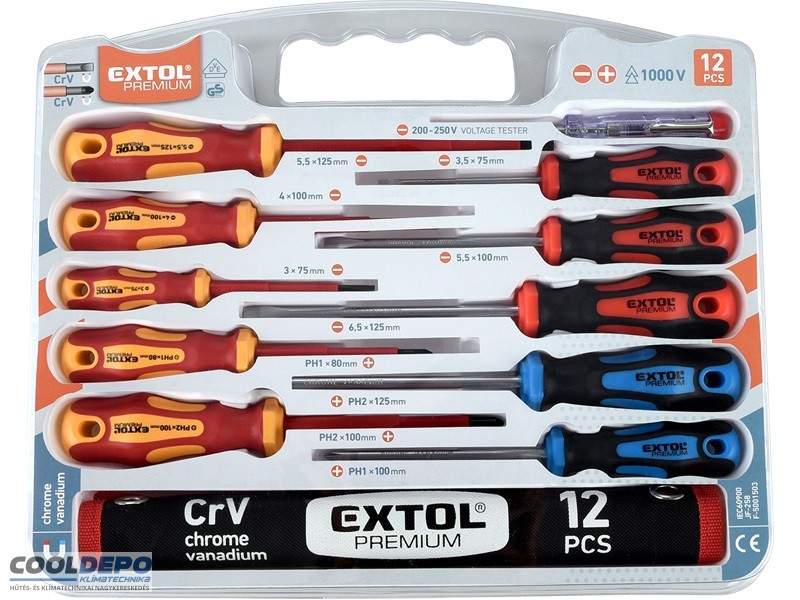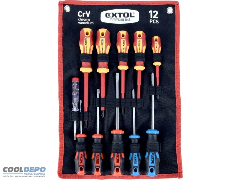csavarhúzó klt. szigetelt 1000V+nem szigetelt, 6+5db ; fáziskeresővel, műanyag kínáló+nylon tok