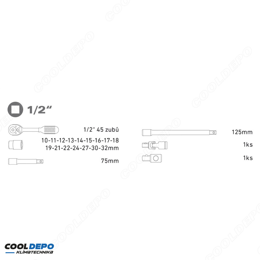 Dugókulcs klt., CV., racsnis 45fog ; 1/2" 21db, 10-32mm