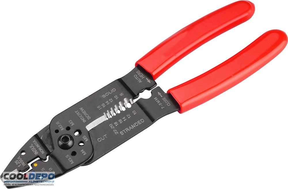 érvéghüvely fogó (krimpelő), 1,0 - 2,5 mm2, vágási kapacitás: M 2,6-3,0-3,5-4,0-5,0, blankolás: 0,6-3,2mm, hossz: 215 mm