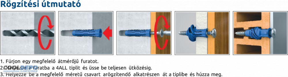 - A forgást gátló fülek alapok széles skálájában teszik használhatóvá, még puha építőanyagokban is.